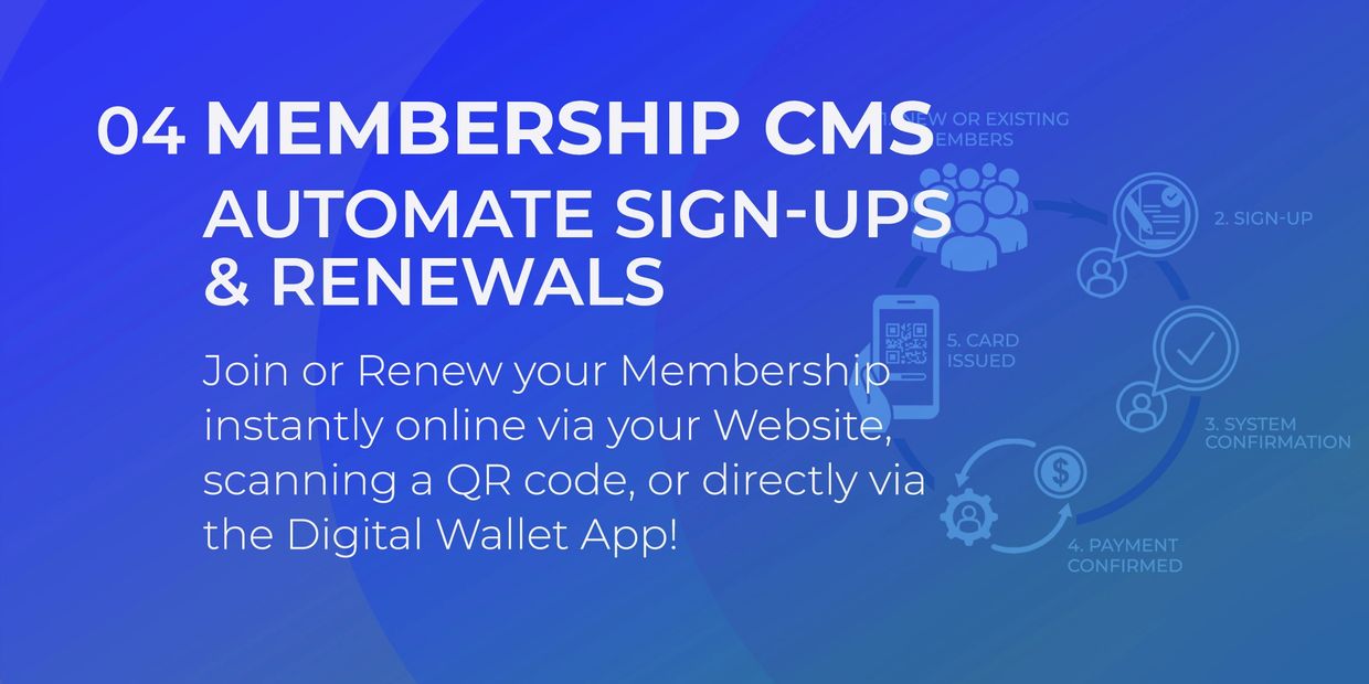 Users can sign up or renew via your website, by scanning a QR code, or directly within the Digital Wallet App using our Membership CMS