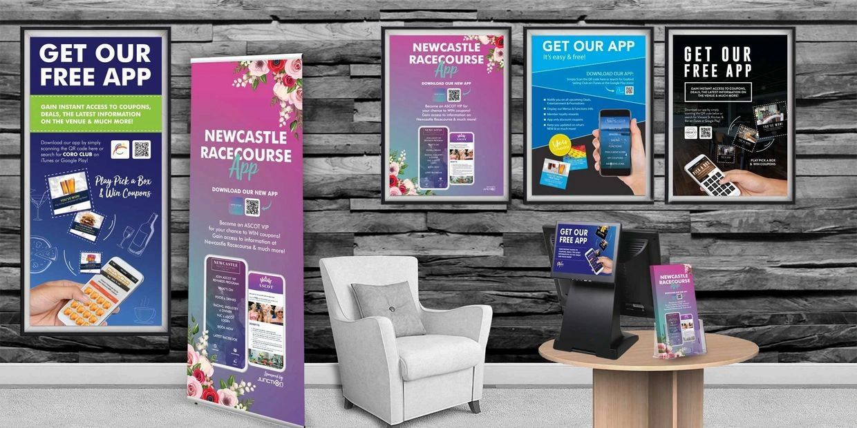 Let us know what sizes you need to suit your internal media platforms. This style of marketing is a great way to increase App awareness to all patrons in the venue. Let them know about your Apps interactive games, loyalty platform, coupons, offers & more!