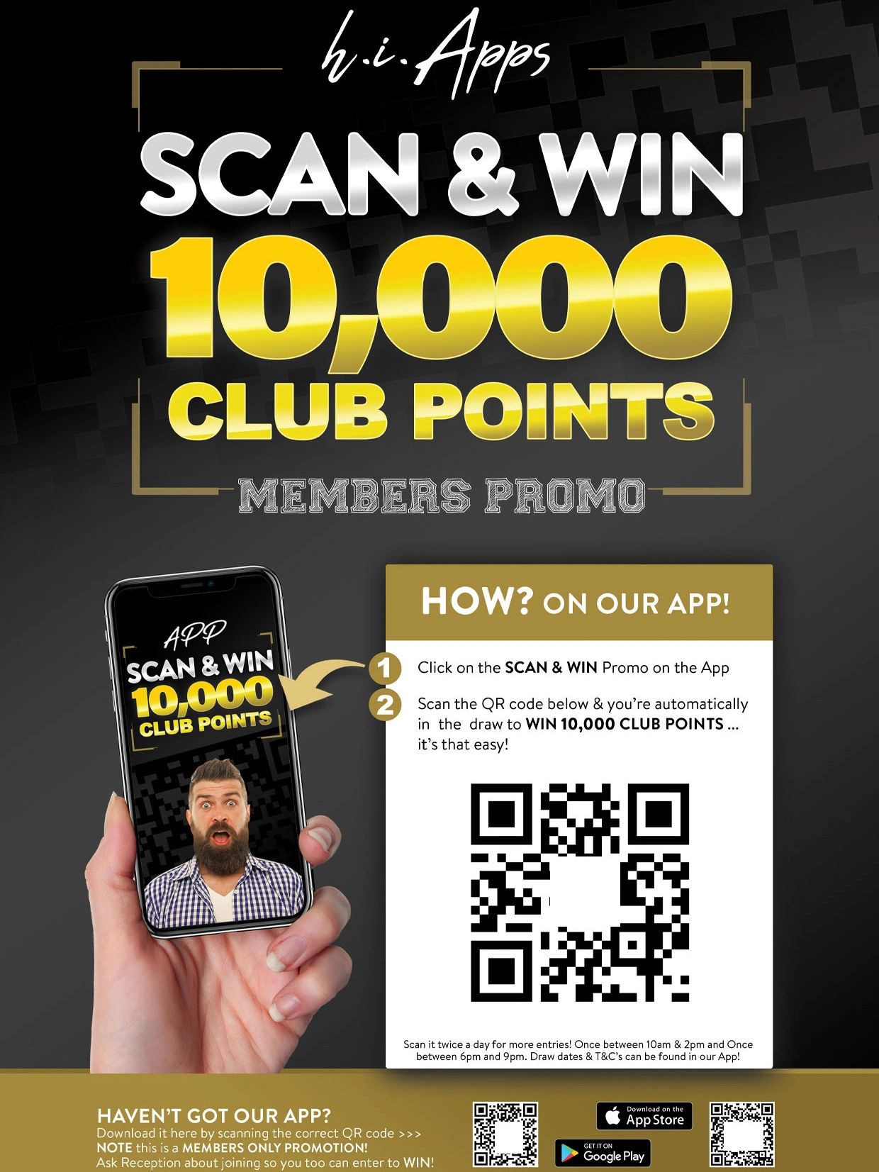 • Scan this code and & your automatically in the draw to win 10,000 CLUB POINTS
